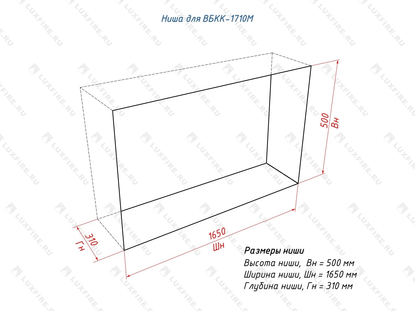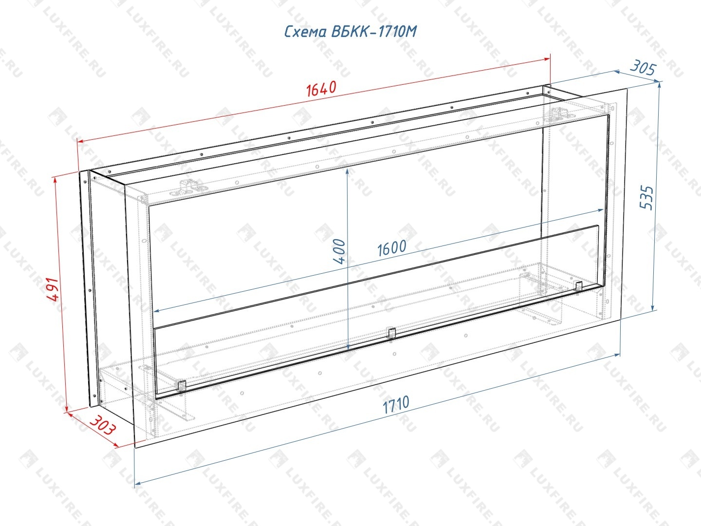 1. Встроенный глухой биокамин Lux Fire Кабинет 1710 М
