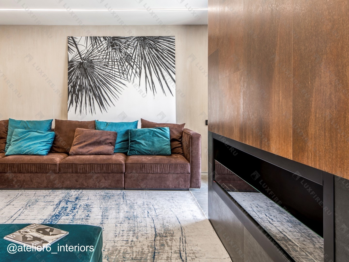 Представляет собой сборную металлическую конструкцию класса М, создающую полузакрытое безопасное пространство для огня с 2 топливными блоками Lux Fire 700М ограниченную закаленным стеклом в котором горит живой огонь с углом обзора 180 градусов .