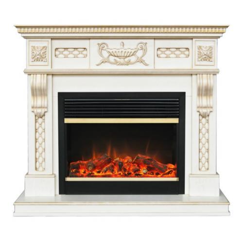 Каминокомплект «Corsica LUX» от производителя Alex Bauman оборудован широкоформатным очагом «Jupiter FX Brass» и выполнен в нежном цвете белого шоколада. Классический портал этой модели гармонично сочетается с очагом, выполненным в современном стиле. Боковые стенки портала оформлены резными вставками, оканчивающимися сверху изогнутыми консолями, которые визуально поддерживают верхнюю часть. Верхняя панель портала богато украшена резьбой. Центральную часть занимает изображение античной амфоры, обрамленной резными вставками. По бокам расположены розетки с растительными мотивами. Массивная каминная крышка по кромке оформлена геометрическим фризом. Верхняя плоскость ровная, что позволяет дополнительно украсить камин различными декоративными элементами.