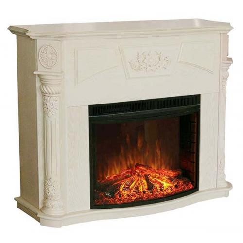 Классический каминный портал Sofie 26 имеет оригинальную форму, он немного расширен снизу в верх. Верхняя панель и основание портала многоугольной формы, с передним краем изогнутой формы. Портал украшен красивыми резными узорами по центру передней панели и на боковых полуколонах.