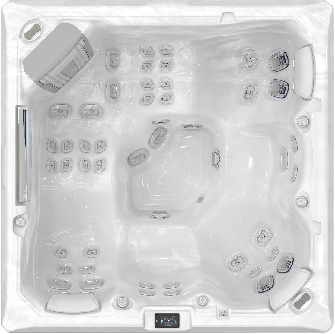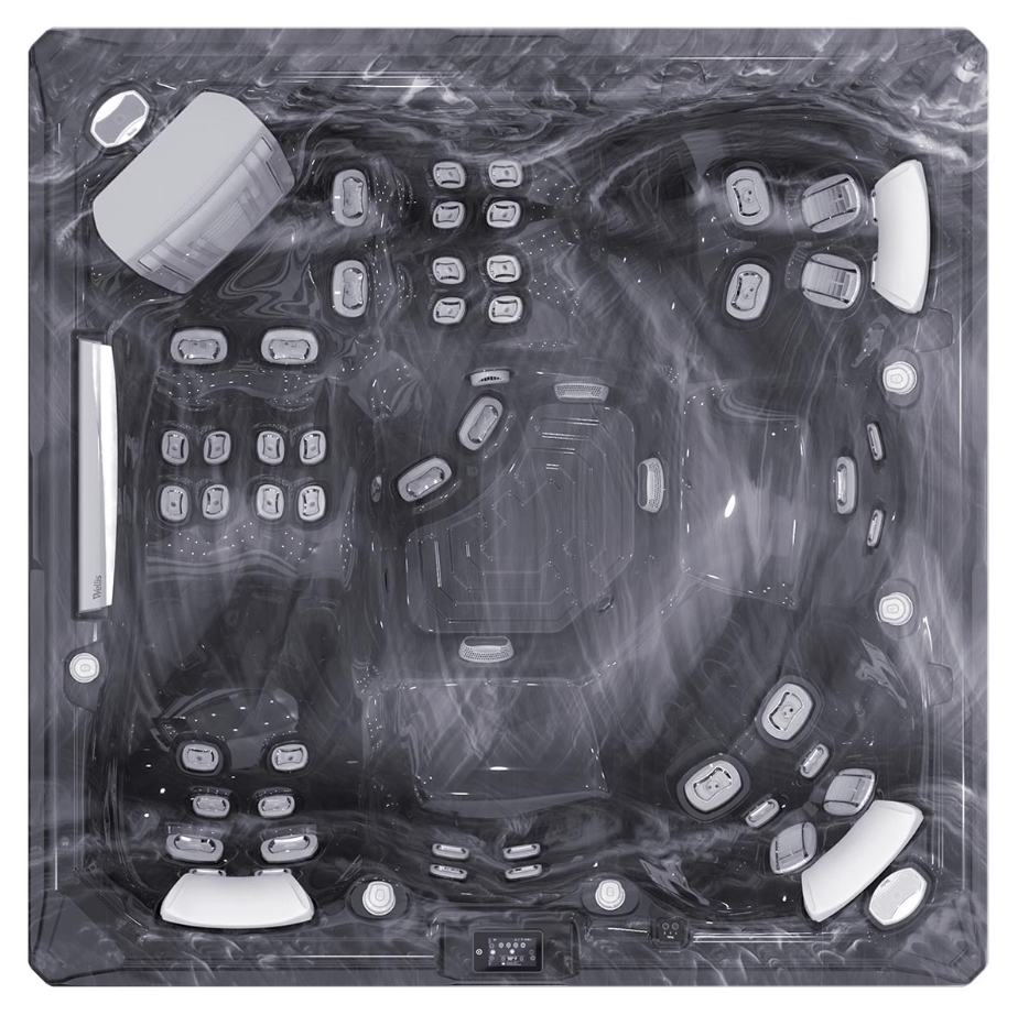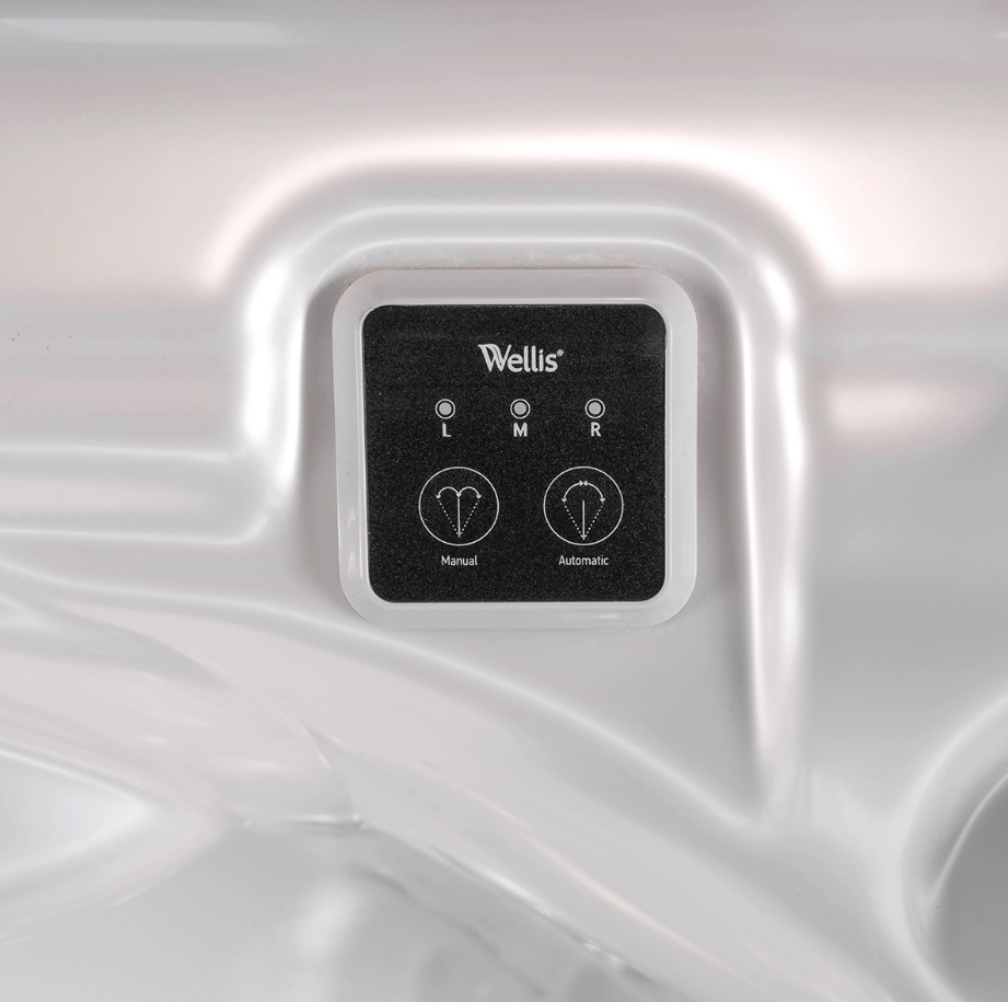 Оптимизированный поток воды Wellis. Наш усовершенствованный электрический водоотвод обеспечивает на 75% более высокое давление гидромассажа. Потребление энергии на 45% ниже по сравнению с другими системами управления предыдущих моделе.