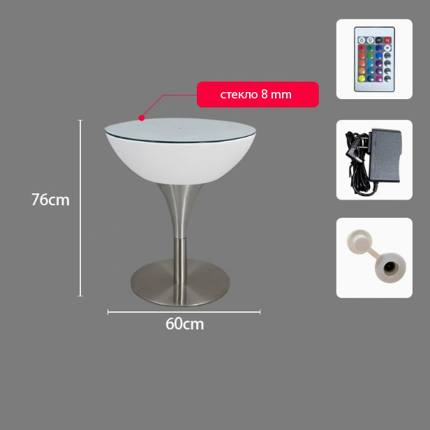 Стол светящийся круглый на металическом основании 60х60х76